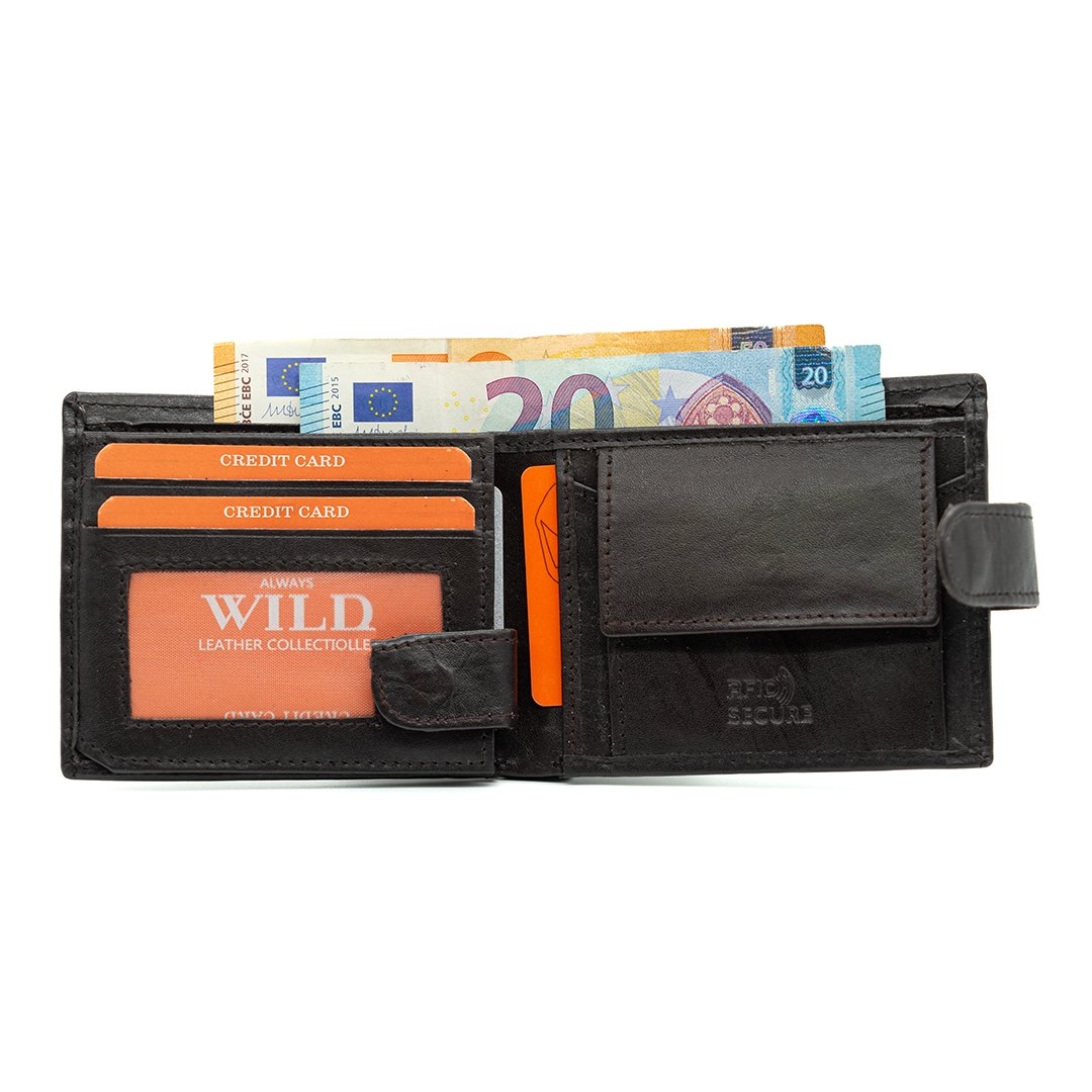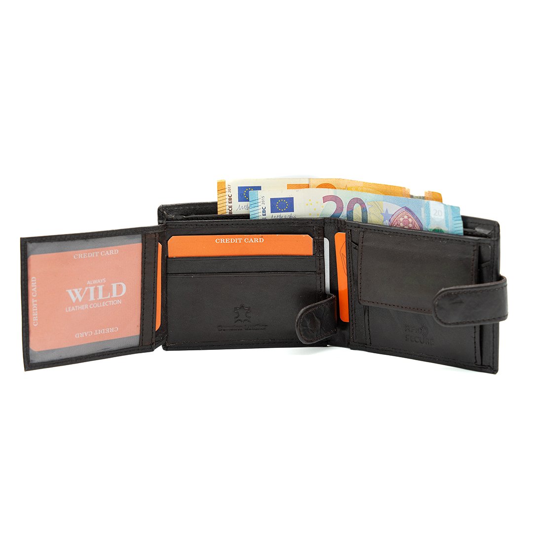 Herren Echtleder Geldbörse mit RFID schutz in braun, Ein hochwertiges feine WILD Rindleder Herren Portemonnaie mit Münzfach