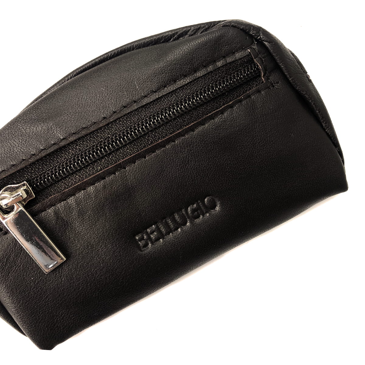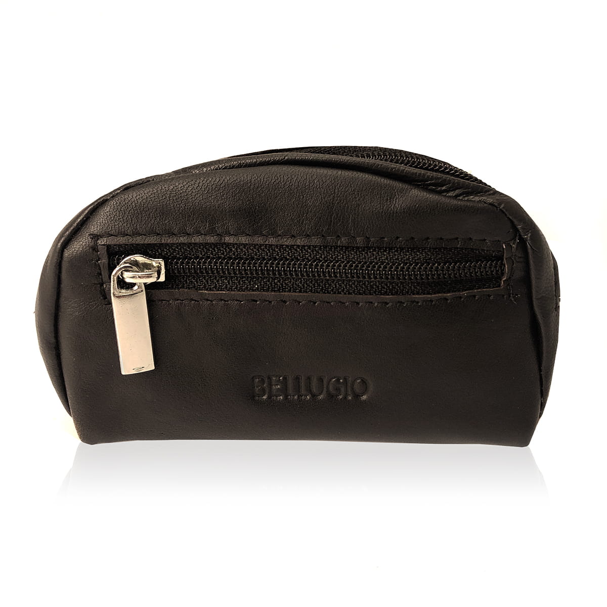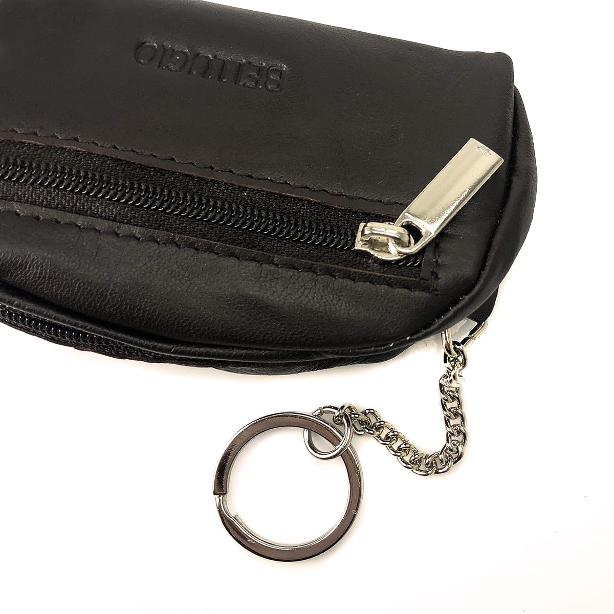 Bellugio Schlüsseletui Leder, klein Münzbörse aus echtem Leder, für Herren und Damen, mit Zwei Fächern, Reißverschluss, Schlüsselanhänger braun.