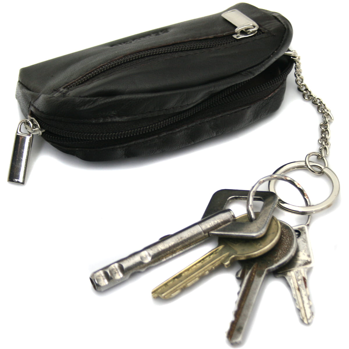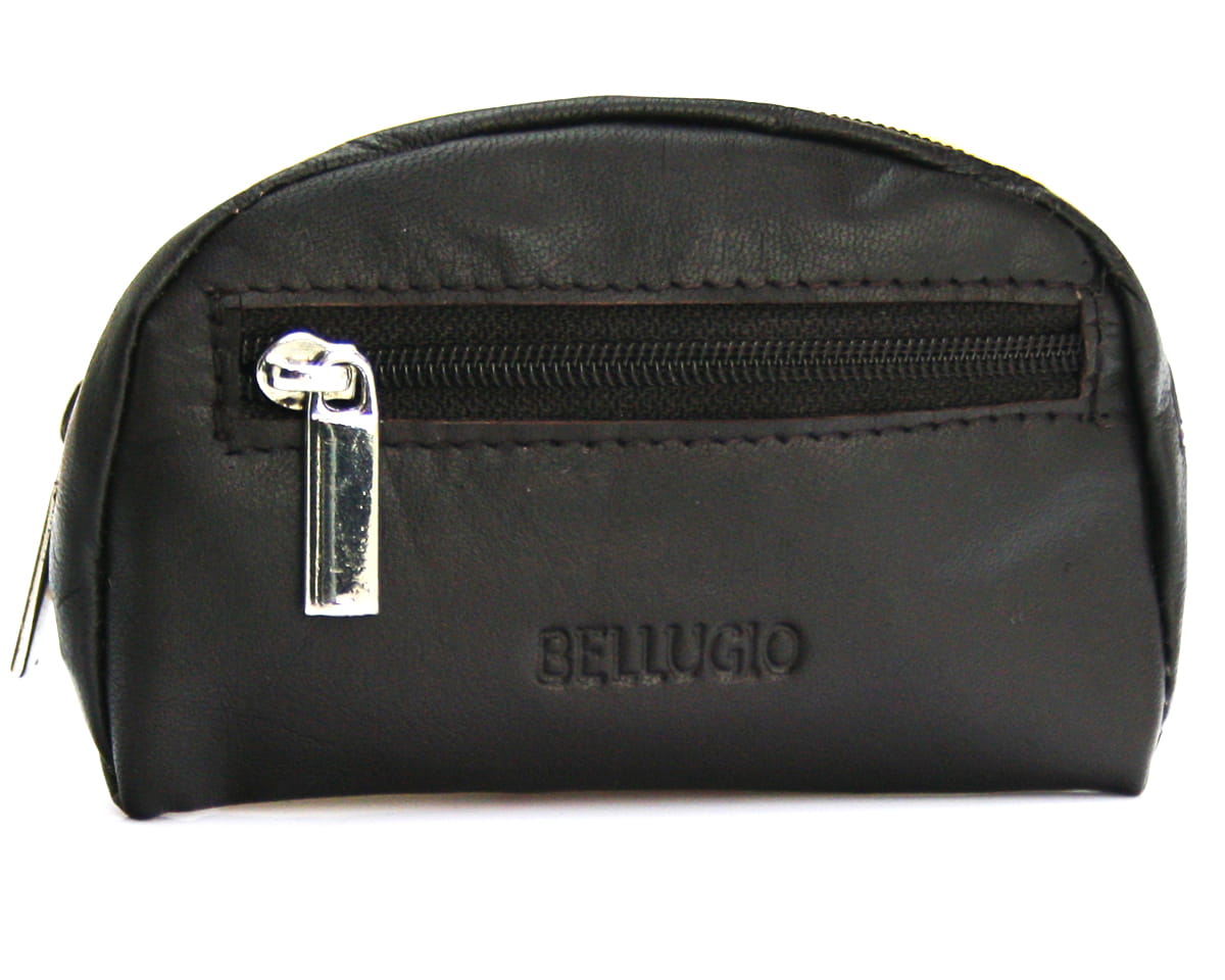 Bellugio Schlüsseletui Leder, klein Münzbörse aus echtem Leder, für Herren und Damen, mit Zwei Fächern, Reißverschluss, Schlüsselanhänger schwarz.